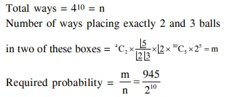 Question: If 10 different balls are to be placed in 4 distinct boxes at random, then the probability that two of these boxes contain exactly 2 and 3 balls is :