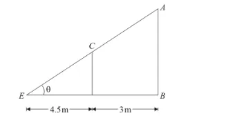 In $\triangle C D E, \tan \theta=\frac{C D}{D E}=\frac{1.5}{4.5}$....(1)