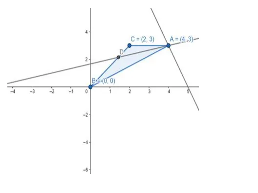 If A(4, 3), B(0, 0) and C(2, 3) are the vertices of a ΔABC, find the equation of the bisector of ∠A.