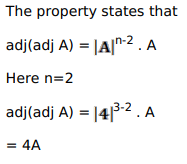 If $A$ is a 3 -rowed square matrix and $|A|=4$ then $\operatorname{adj}(\operatorname{adj} A)=?$