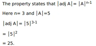 If $A$ is a 3-rowed square matrix and $|A|=5$ then $\mid$ adj $A \mid=$ ?