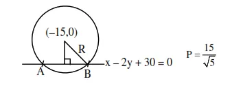 $\ell_{\mathrm{AB}}=2 \sqrt{\mathrm{R}^{2}-\mathrm{P}^{2}}=2 \sqrt{\frac{225}{4}-\frac{225}{5}}$