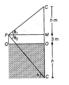 $\Rightarrow$ $\frac{\tan \theta_{2}}{h+3}=\frac{1}{P M}$ ...(ii)