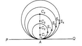 Given that PQ is any line segment and S1, S2, S3, S4,… circles are touch a line segment PQ at a point A. Let the centres of the circlesS1,S2, S3,