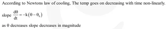 If a piece of metal is heated to temperature $\theta$ and then allowed to cool in a room which is at temperature $\theta_{0}$ the graph between the temperature $\mathrm{T}$ of the metal and time $t$ will be closed to: