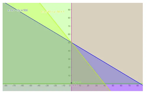 $\frac{x}{40}+\frac{y}{50} \leq 1$