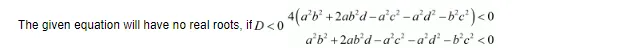 $=\{2(a b+b d)\}^{2}-4 \times\left(a^{2}+b^{2}\right) \times\left(c^{2}+d^{2}\right)$