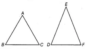 If ΔABC ~ ΔEDF and ΔABC is not similar to ΔDEF, then which of the following is not true?