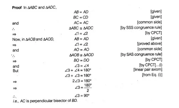 If ABCD is quadrilateral such that AB = AD and CB = CD, then prove that AC is the perpendicular bisector of BD.