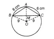 If an isosceles ΔABC in which AB = AC = 6 cm, is inscribed in a circle of radius 9 cm, find the area of the triangle.