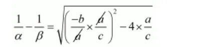 $\frac{1}{\alpha}-\frac{1}{\beta}=\sqrt{\frac{b^{2}}{c^{2}}-\frac{4 a \times c}{c \times c}}$