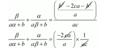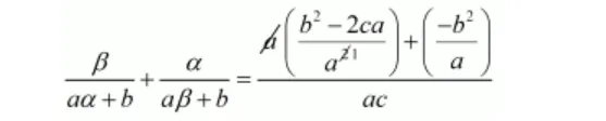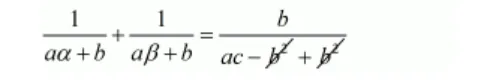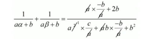 $\frac{1}{a \alpha+b}+\frac{1}{a \beta+b}=\frac{-b+2 b}{a \times c-b^{2}+b^{2}}$