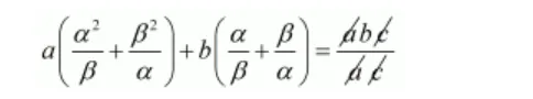 $a\left(\frac{\alpha^{2}}{\beta}+\frac{\beta^{2}}{\alpha}\right)+b\left(\frac{\alpha}{\beta}+\frac{\beta}{\alpha}\right)=a\left(\frac{\alpha^{2}}{\beta}+\frac{\beta^{2}}{\alpha}\right)+b\left(\frac{\alpha}{\beta}+\frac{\beta}{\alpha}\right)$