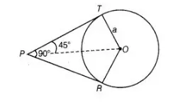 If angle between two tangents drawn from a point P to a circle of radius a and centre 0 is 90°, then OP = a √2.