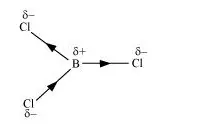 As a result of the difference in the electronegativities of B and Cl, the B–Cl bond is polar in nature. However, the BCl3 molecule is non-polar. This is because BCl3 is trigonal planar in shape. It is a symmetrical molecule. Hence, the respective dipole-moments of the B–Cl bond cancel each other, thereby causing a zero-dipole moment.
