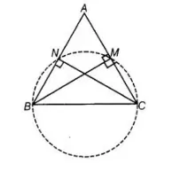 If BM and CN are the perpendiculars drawn on the sides AC and AB of the ΔABC, prove that the points B, C, M and N are concyclic.