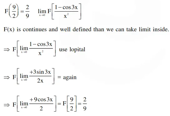 If $f(x)$ is continuous and $f(9 / 2)=2 / 9$, then $\lim _{x \rightarrow 0} f\left(\frac{1-\cos 3 x}{x^{2}}\right)$ is equal to: