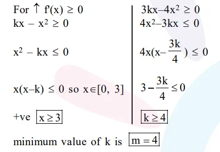 If $\mathrm{m}$ is the minimum value of $\mathrm{k}$ for which the function $\mathrm{f}(\mathrm{x})=\mathrm{x} \sqrt{\mathrm{kx}-\mathrm{x}^{2}}$ is increasing in the interval $[0,3]$ and $\mathrm{M}$ is the maximum value of $\mathrm{f}$ in $[0,3]$ when $\mathrm{k}=\mathrm{m}$, then the ordered pair $(\mathrm{m}, \mathrm{M})$ is equal to :