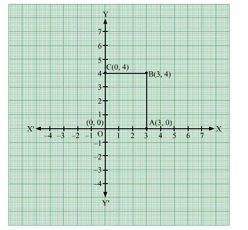 The points O(0, 0), A(3, 0), B(3, 4) and C(0, 4) can be plotted on the Cartesian plane as follows: