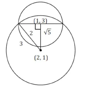 $\therefore(\sqrt{5})^{2}+(2)^{2}=r^{2}$
