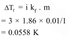 If sodium sulphate is considered to be completely dissociated into cations and anions in aqueous solution, the change in freezing point of water $\left(\Delta \mathrm{T}_{\mathrm{f}}\right)$, when $0.01 \mathrm{~mol}$ of sodium sulphate isdissolved in $1 \mathrm{~kg}$ of water, is $\left(\mathrm{K}_{\mathrm{f}}=1.86 \mathrm{~K} \mathrm{~kg} \mathrm{~mol}^{-1}\right)$ :-