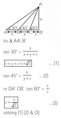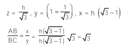 If the angles of elevation of the top of a tower from three collinear points $A, B$ and $C$, on a line leading to the foot of the tower, are $30^{\circ}, 45^{\circ}$ and $60^{\circ}$ respectively, then the ratio, $\mathrm{AB}$ : $B C$, is: