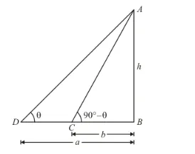 $\Rightarrow \tan \left(90^{\circ}-\theta\right)=\frac{h}{h}$