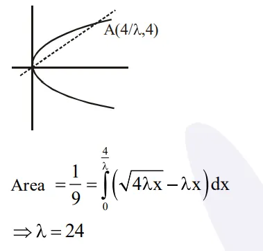 If the area (in sq. units) bounded by the parabola $y^{2}=4 \lambda x$ and the line $y=\lambda x, \lambda>0$, is $\frac{1}{9}$, then $\lambda$ is equal to: