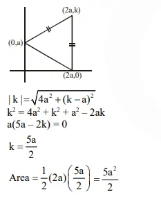 If the extremities of the base of an isoscelestriangle are the points $(2 \mathrm{a}, 0)$ and $(0, \mathrm{a})$ and the equation of one of the sides is $x=2 a$, then the area of the triangle, in square units, is: