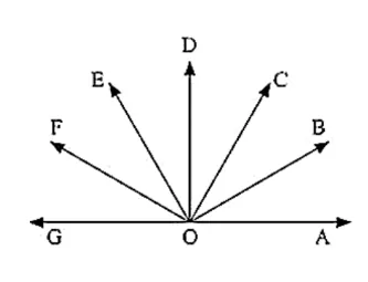 (iv) Adjacent supplementary angles are (∠AOB, ∠BOG); (∠AOC, ∠COG); (∠AOD, ∠DOG)