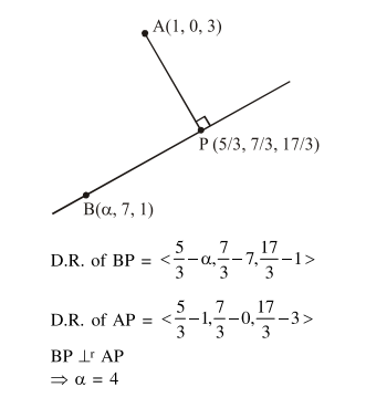 If the foot of the perpendicular drawn from the point $(1,0,3)$ on a line passing through $(\alpha, 7,1)$ is $\left(\frac{5}{3}, \frac{7}{3}, \frac{17}{3}\right)$, then $\alpha$ is equal to________