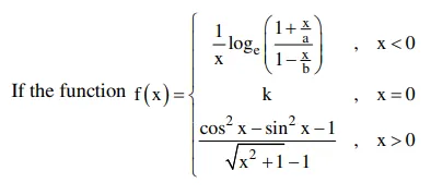 is continuous at $x=0$, then $\frac{1}{a}+\frac{1}{b}+\frac{4}{k}$ is equal to :
