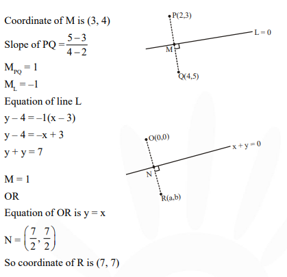 If the image of point P(2, 3) in a line L is Q (4, 5) then, the image of point R (0, 0) in the same line is :