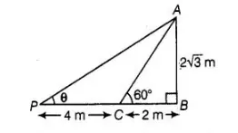 $\Rightarrow$ $\tan \theta=\frac{2 \sqrt{3}}{4+2}=\frac{2 \sqrt{3}}{6}$