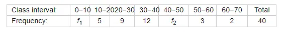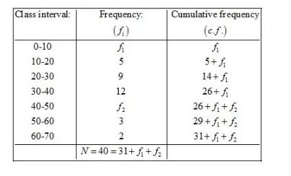If the median of the following data is 32.5, find the missing frequencies.