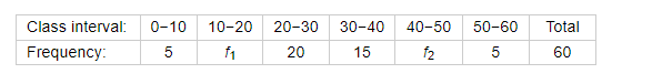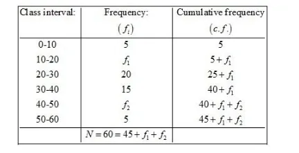 If the median of the following frequency distribution is 28.5 find the missing frequencies: