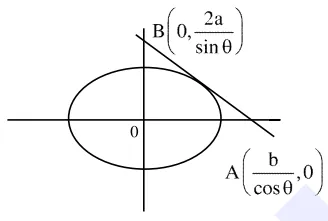 So, area $(\Delta \mathrm{OAB})=\frac{1}{2} \times \frac{\mathrm{b}}{\cos \theta} \times \frac{2 \mathrm{a}}{\sin \theta}$