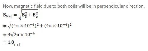 If the outer coil of the previous problem is rotated through $90^{\circ}$ about a diameter, what would be the magnitude of the magnetic field B at the center?