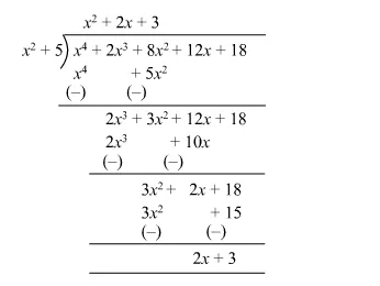 On division, we get the quotient $x^{2}+2 x+3$ and the remainder $2 x+3$