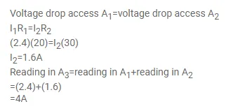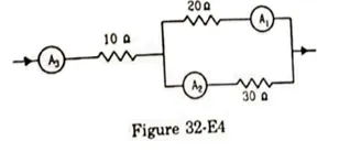 If the reading of ammeter $\mathrm{A}_{1}$ in figure (32-E4) is $2.4 \mathrm{~A}$, what will the ammeters $\mathrm{A}_{2}$ and $\mathrm{A}_{3}$ read? Neglect the resistances of the ammeter.