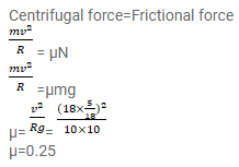 If the road of the previous problem is horizontal (no banking), what should be the minimum friction coefficient so that a scooter going at $18 \mathrm{~km} / \mathrm{hr}$. does not skid?