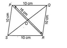 Given, side of a rhombus PQRS is 10 cm and one of the diagonal is 16 cm.