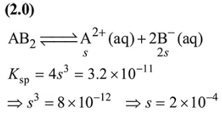 If the solubility product of $\mathrm{AB}_{2}$ is $3.20 \times 10^{-11} \mathrm{M}^{3}$, then the solubility of $\mathrm{AB}_{2}$ in pure water is__________ $\times 10^{-4} \mathrm{~mol} \mathrm{~L}^{-1}$. [Assuming that neither kind of ion reacts with water]