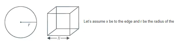 Volume of the cube $=x^{3}$ and the volume of sphere $=\frac{4}{3} \pi r^{3}$