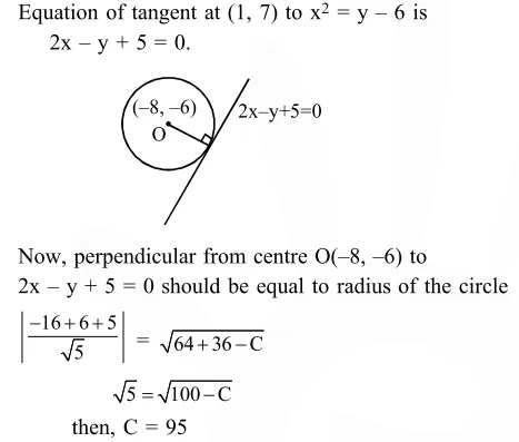 If the tangent at $(1,7)$ to the curve $x^{2}=y-6$ touches the circle $x^{2}+y^{2}+16 x+12 y+c=0$ then the value of $\mathrm{c}$ is: