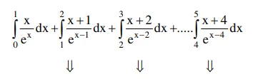 $\Rightarrow \int_{0}^{5} \frac{5 x+20}{e^{x}} d t=5 \int_{0}^{1} \frac{x+4}{e^{x}} d x$