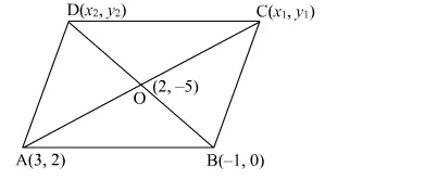 Let ABCD be the parallelogram with two adjacent vertices A(3, 2) and B(−1, 0). Suppose O(2, −5) be the point of intersection of the diagonals AC and BD.