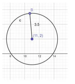 $\Rightarrow(x-11)^{2}+(y-2)^{2}=12.25$