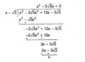 Let f(x) = x3 – 3√5x2 + 13x – 3√5 and given that, (x – √5) is a one of the factor of f(x). Now, using division algorithm,