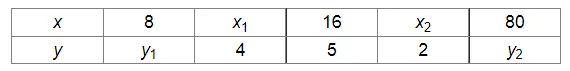 Therefore, $8 \times y_{1}=x_{1} \times 4=16 \times 5=x_{2} \times 2=80 \times y_{2}$